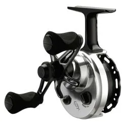 The 13 Fishing Black Betty 6061 Inline Ice Reel features a 6061 CNC-machined-aluminum construction and 2.7:1 gear ratio for durability and toughness. The frame design allows anglers to fish a pistol or pencil grip style without rubbing the spool. Available in left- or right-hand retrieve.