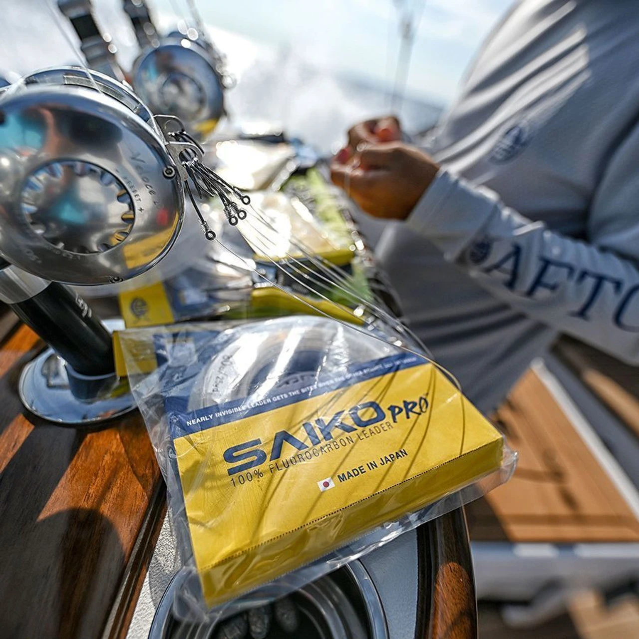 Developed in collaboration with Sunline Japan to achieve optimum leader performance, Aftco Saiko Pro Fluorocarbon Leader seeks to give both inshore and offshore anglers an unfair advantage over the competition. Saiko Pro Fluorocarbon features a supple yet hard finish that provides unprecedented abrasion resistance and knot strength. Testing has shown Saiko Pro to be up to 20% stronger after abrasion than other fluorocarbon leader materials, allowing you to have confidence in your leader’s strength after dozens of uses. The 12lb – 80lb test comes on Aftco’s SecureSpool that makes for easy leader storage without the mess from uncoiled and disorganized leader spools, while the 100lb ? 300lb test coils come with a weather resistant leader bag that protects the leader from the elements and maintains line longevity.