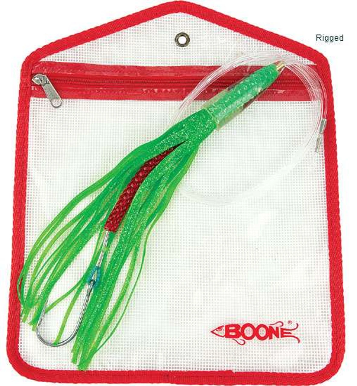 The Boone Greeny is a great Dolphin, Tuna, Wahoo, White Marlin and Yellowtail lure. Deadly on all fish at all speeds. Greeny’s can be used with strip rig, ballyhoo or Boone Birds.