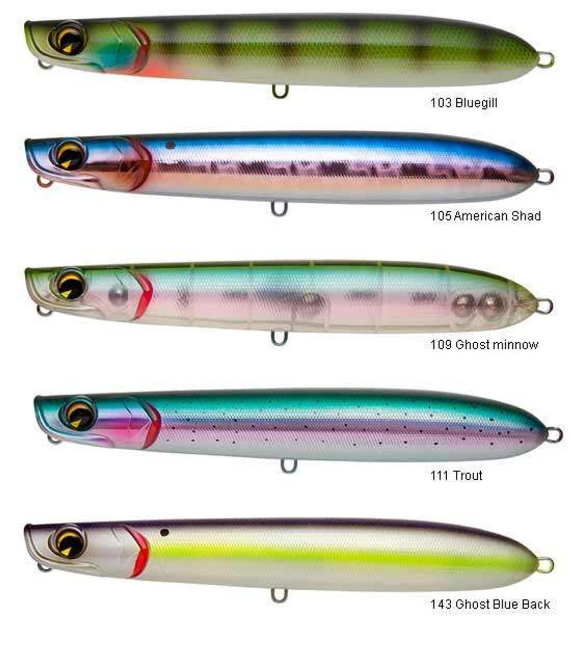 The Big Stik is a high-tech lunker-killer that walks, pops, spits and catches just about anything that swims. It?s a rear weighted bait making it easier to cast and enabling it to sit in a position that as soon as you start your retrieve, it starts to walk and pitch water a foot and a half to three feet in front of the bait. The ima Big Stik features wire through construction, heavier split rings and quality Owner hooks so it will stand up to any trophy fish. It is deadly for bass, musky, pike, stripers and many saltwater species! It is 7 inches long and weighs 1.75 ounces. It features eight individual sound chambers that allow it to be popped subtly or worked faster to make it ?the loudest plug you?ve ever heard.? It?ll spit like a magnum popper, walk like the hardest-sashaying walking bait, and anglers needn?t be experts to make it do its thing.