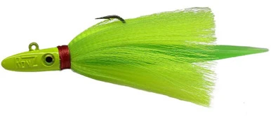 Expertly crafted for maximum appeal and toughness, the RonZ Z-Hawk Jigs are excellent lures for targeting heavy hitters like cobia, striped bass, snook, redfish and more. Built around the famous RonZ Hydro Head, the Z-Hawk Jigs include top quality components such as Ultra Fish-Hair skirts, realistic 3D eyes, and Mustad’s strongest jig hook. Each lure comes equipped with an 8in RonZ Tail. The tail, combined with the long free flowing skirt, produces the perfect strike inducing action for a wide variety of gamefish. The 2-1/2oz weight makes for easy long distance casting and a controlled sink that allows the jig to be worked at a range of depths.